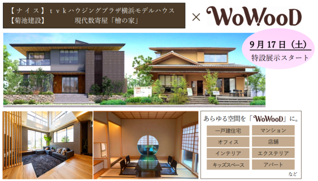 ナイス株式会社(本社:神奈川県横浜市、社長:杉田 理之)が日本最大級の住宅総合展示場「tvkハウジングプラザ横浜」に出展するモデルハウスが、このたびオープンから一周年を迎えます。これを記念して、同モデルハウス内において、当社が提案する未来を彩る木質空間「WoWooD(TM) (ワウッド)」の特設展示を9月17日(土)より実施いたします。