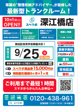 【10月1日(土)オープン】見学から契約、解約まで完全非接触・非対面、お申し込みからご利用まで最短1時間!東京、大阪にて絶賛運営中のトランクルーム【スペラボ】が大阪市城東区永田に出店!