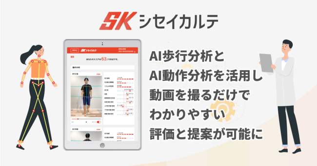 姿勢の歪み具合を可視化するAI姿勢分析システムとして誕生した「シセイカルテ」は、2021年10月に、従来のAI姿勢分析機能に加えAI歩行分析機能を追加しました。