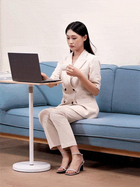 JOPREE-L42の上にノートPCを置くだけで、簡単にワークスタイルを切り替えられます。台座の直径は30×30cmで、リビングや部屋、オフィス、ベランダなど、気分によって様々な場所に設置し、異なる環境で作業を行うことができます。
