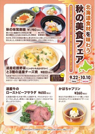 9月22日より船内レストランにて北海道食材を味わう秋の美食フェア開催!|新日本海フェリー