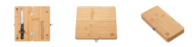 「Banboo ナイフ&まな板セット」は、二つ折りできるまな板の中にナイフを収納できるので、保管や持ち運びにたいへん便利です。さらに、ナイフ落下防止マグネットも付いており、コンパクトかつ安全に持ち運ぶことができます。そのままお皿として使うこともできるので、洗い物が減り時間短縮にもつながります。