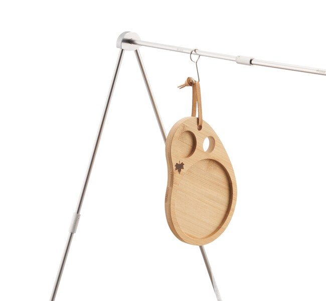 「Banboo メスキットぴったりまな板(2pcs)」は、別売りの「LOGOS メスキット」にぴったり収まるサイズのまな板です。メスキットに入るので、持ち運ぶ際に荷物を減らすことができます。メスキットの下に敷けば鍋敷きにもなり、セットの2枚を並べると鍋にも対応します。端に穴が空いており、S字フックなどを使えば吊り下げて乾燥させることもできます。