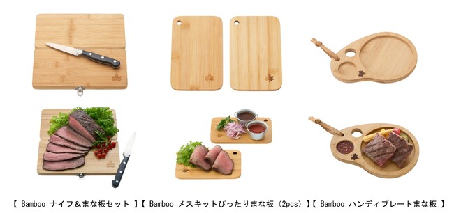 衛生的に調理ができて、食事シーンではプレートとしても活躍する「Banboo まな板」シリーズ3種を、アウトドアライフやご家庭で、ぜひともご活用ください。