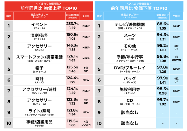 <メルカリ物価・数量指数からわかる8月トレンド通信>7月に続き、「イベント(チケット)」が前年同月比1位をキープ
