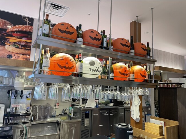 店内は、ハロウィーンの装飾が施され、アットホームなハロウィンパーティーをイメージした空間となっています。ジャック・オ・ランタンや可愛らしいお化けで装飾された店内をぜひお楽しみください。