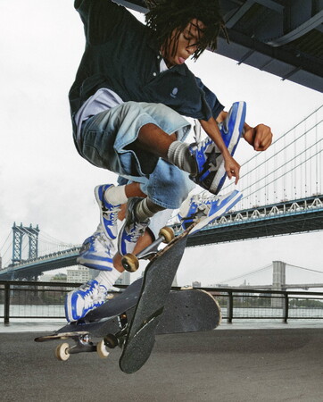 今回リリースされるコレクションでは、従来のSK8STAのデザインを大きくアップグレードしています。レッド、グリーン、ブルーの鮮やかなカラーリングのレザーとクールなグレーのスエードの2種類の素材を組み合わせたデザインは、足元を鮮やかに彩ってくれること間違いなしです。