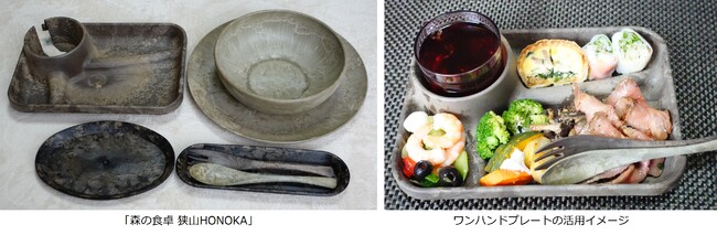 「森の食卓 狭山HONOKA」「森のブロック 狭山HONOKA」狭山茶の製造工程で発生する茶の粉を活用した食器・ブロックを開発