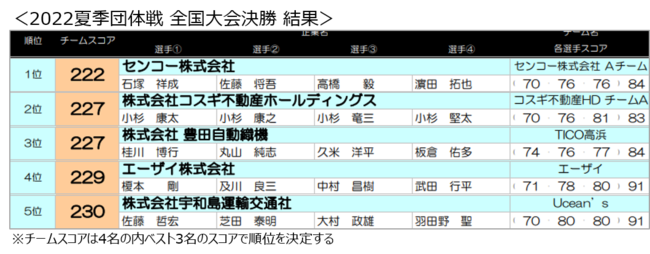 大会名: RELO CLUB全日本企業対抗ゴルフトーナメント「リクルートCUP 2022夏季団体戦」