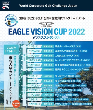 全日本企業対抗ゴルフトーナメント『EAGLE VISIONCUP 2022』ダブルススクランブルへの参加を募集しております。本年度から、さらにダブルス競技へ力を入れ、より参加しやすくするために株式会社BUZZGOLFと株式会社リロクラブが協力して開催することになりました。