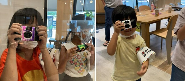 世代によっては少し懐かしく、再び人気の“使い捨てカメラ”の外側に好きなデザインをして、世界に1つのオリジナルカメラに変身。親子で使い方を確認し、会場の注文住宅ショールームの「LIFE DESIGN PARK 久屋大通」店内で本番前の撮影練習会。キッズカメラマンも撮られる側も笑いがこぼれる様子が印象的でした。きっと敬老の日の記念撮影も明るい撮影現場となっただろうと思われます。