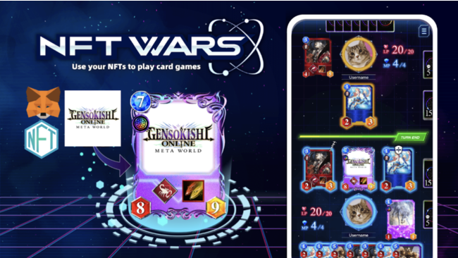 「元素騎士オンライン(GensoKishi Online -META WORLD-)」のNFTを保有しているユーザーが、『NFTWars』のゲーム内でカードゲームを行うことができ、ユーザーはプレイすることでガバナンストークンであるTCGCoinの獲得も可能となります。