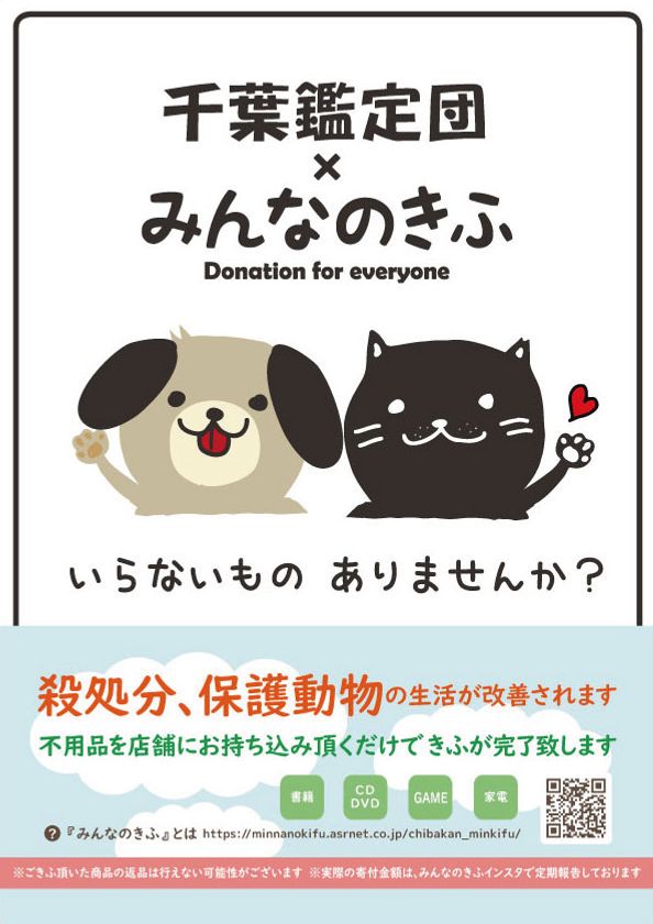 リサイクルショップに不用品を持ち込んで動物保護活動へ寄付!「千葉鑑定団」×「みんなのきふ」が提携 寄付品買取の受付を開始