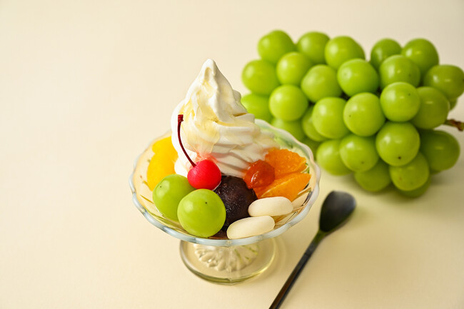 同日に期間限定商品として、山梨県産のシャインマスカットを添えた「榮太樓あんみつパフェシャインマスカット」とまるごと一粒包んだ「シャインマスカット大福」を販売。