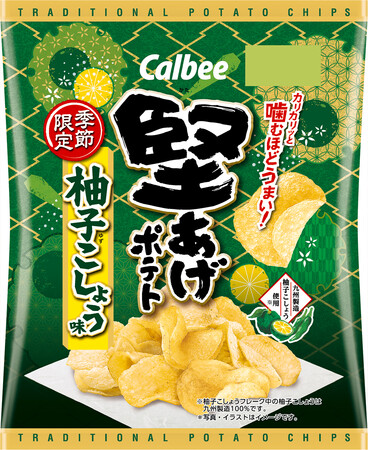 再販要望を受け、ファン待望の味が2年ぶりに復活!九州製造柚子こしょうと柚子果汁パウダーを使った本格的な味わい『堅あげポテト 柚子こしょう味』