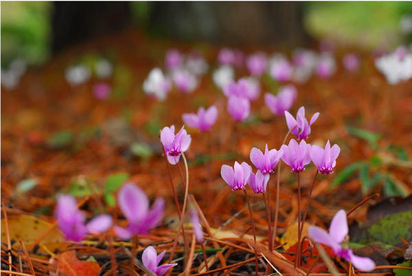 原種シクラメン「シクラメン・ヘデリフォリウム」約500株の群落が見頃です!