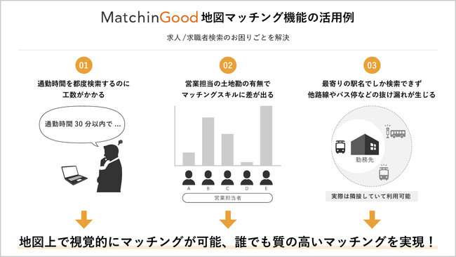 株式会社じげん(本社:東京都港区、代表取締役 社長執行役員CEO:平尾丈、東証プライム:3679、以下じげん)のグループ会社で、人材派遣・紹介向けクラウド型業務システム、DX支援サービスを提供する株式会社ブレイン・ラボ(本社:東京都港区、代表取締役:中江典博、以下 ブレイン・ラボ)は、ブレイン・ラボが提供するサービス、「マッチングッド派遣」において、地図マッチング機能を追加したことをお知らせいたします。