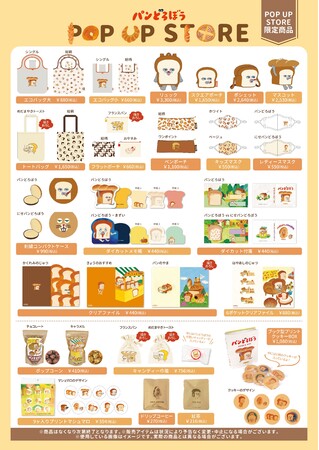 MINI POPUP STOREでは、エコバックやリュック、メモ帳や付箋など普段の生活でつかえる文具雑貨等から、ポップコーンやドリップコーヒーなど、ホッとひと息つく時間をより楽しくしてくれるお菓子類まで、『パンどろぼう』のかわいい魅力がたくさん詰まった、POPUP STORE限定の商品を多数展開いたします。