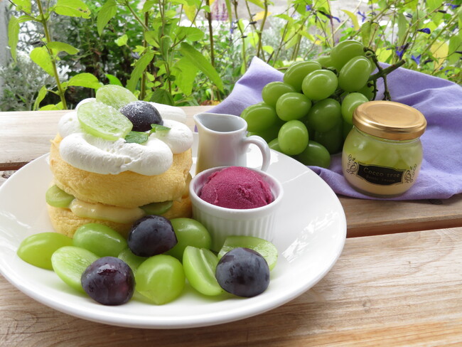 福島・喜多方のカフェ&スイーツ「Cocco tree」にシャインマスカットを使用したパンケーキ・ぷりんが登場します!期間限定メニューをお楽しみください。
