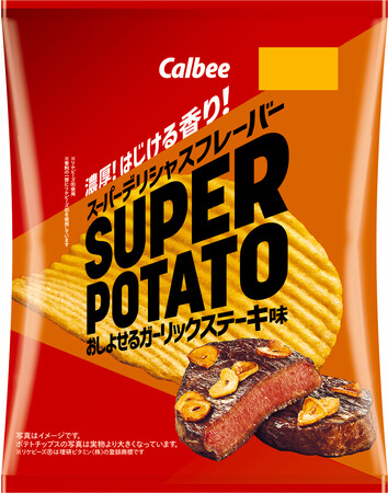 ●『スーパーポテト おしよせるガーリックステーキ味』はガーリックと醤油ダレの濃厚な味わいと、炭焼きの香ばしい風味が楽しめる「スーパーポテト」です。