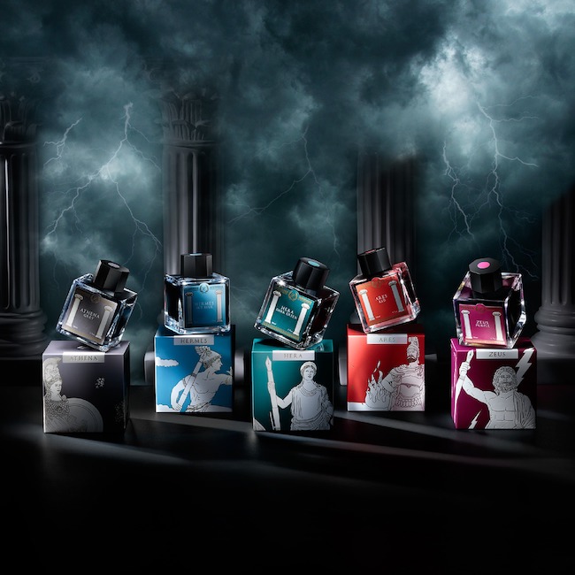 創業40年の万年筆ブランドが手掛けた、ギリシャ神話をモチーフにした万年筆インク。深みのあるパープルやレッド、透き通るようなブルーなど、どこかロマンを感じさせる発色。万年筆インクからギリシャ神話に思いを馳せてみては。