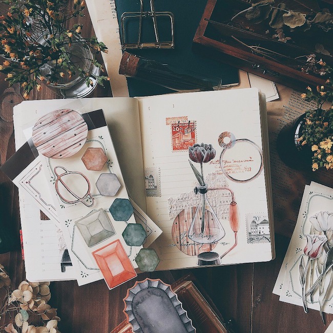 繊細なタッチで描かれたイラストが大人気のブランド。手帳や手紙に重ねて貼っていくと、ぐっとアーティスティックなムードに。ほかにもコラージュにぴったりのカードやはんこが揃います。