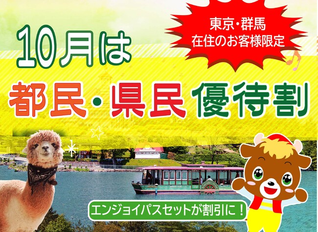 那須興業株式会社(栃木県那須町/代表取締役社長:矢澤 剛志)が運営する “那須高原 りんどう湖ファミリー牧場(以下、「りんどう湖ファミリー牧場」という)”は、10月1日(土)から10月31日(月)までの期間、東京都・群馬県在住のお客様へ日頃の感謝の気持ちを込めて、りんどう湖ファミリー牧場「エンジョイパスセット」が割引になる「優待割」を開催します。
