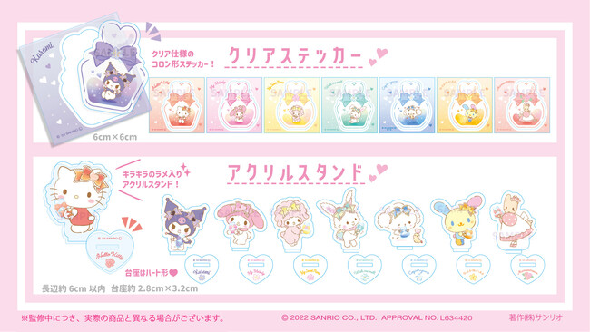 キャラクターラインナップ(全8種):ハローキティ、ウサハナ、マイメロディ、クロミ、マイスウィートピアノ、ウィッシュミーメル、こぎみゅん、マロンクリーム