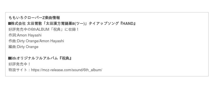ももいろクローバーZ出演太田漢方胃腸薬IIスペシャルサイトURL:https://www.ohta-isan.co.jp/kanpo2/
