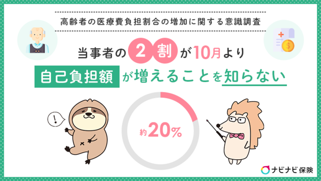 「ナビナビ保険」が高齢者の医療費負担割合の増加に関する意識調査を発表 当事者の2割が10月より自己負担額が増えることを知らないと明らかに