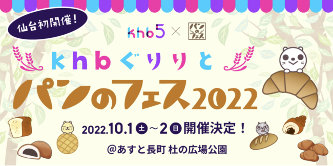 「パンのフェス」は、2016年に横浜赤レンガで初開催され、今日までに累計100万人以上を動員した多くの方に好評いただいているパンのイベントです。今回、khb東日本放送とコラボレートして仙台で初開催される「khbぐりりとパンのフェス2022」では、全国各地で人気のパン屋さんが20店舗以上集結。普段食べることができないパンをご堪能いただけます。※イベント名の「ぐりり」とは、khb東日本放送の公式マスコットキャラクターです。
