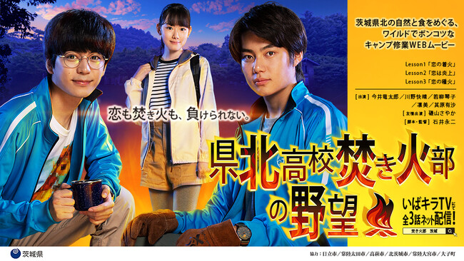 茨城県では、今年度、県北(けんぽく)地域の知名度向上と誘客促進を図るため、県北6市町と連携し、 「アウトドア」をテーマとした「青春キャンプ修業」WEBドラマを制作しました 。架空の高校、県北高校「焚き火部」の青春の野望と挫折を描きながら、県北地域の豊かな自然やキャンプ場などのアウトドアスポット、食の魅力を感じることができるストーリーです。昨年度に 制作・公開し 、 再生回数27万回(※1)を 突破、現在もいばキラTV(※2)にて配信中の「県北高校フシギ部の事件ノート 」の 続編にして、全く新しい物語です 。2022年9月 30 日(金) より、いよいよ配信がスタート致します。