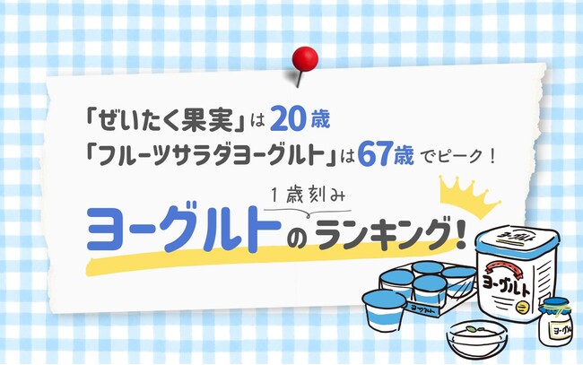CCCマーケティング株式会社(本社:東京都渋谷区、代表取締役社長:田代誠)は、約7,000万人のT会員の購買データをもとに、1歳刻みで性年齢別の購買傾向を読み解いた「1歳刻み!約7,000万人の購買商品ランキング」調査を実施いたしました。今回は、全国15~69歳の男女が2021年7月1日~2022年6月30日の期間に購買した、固形・飲料どちらも含む「ヨーグルト」カテゴリーから、購買商品ランキングの結果を発表いたします。