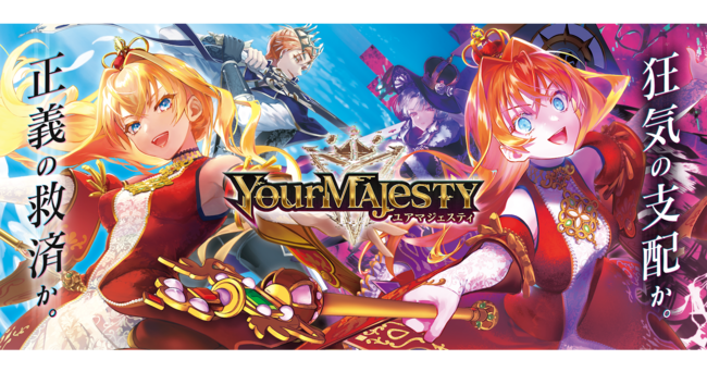 スマートフォン向けアプリゲーム『ユアマジェスティ』は、滅びに瀕した世界を舞台に転生した「異世界の王や女王」と紡ぐ【「正義」と「狂気」のRPG】です。本日9月30日(金)12:00よりApp StoreおよびGoogle Play ストアにて事前予約受付を開始いたしました。