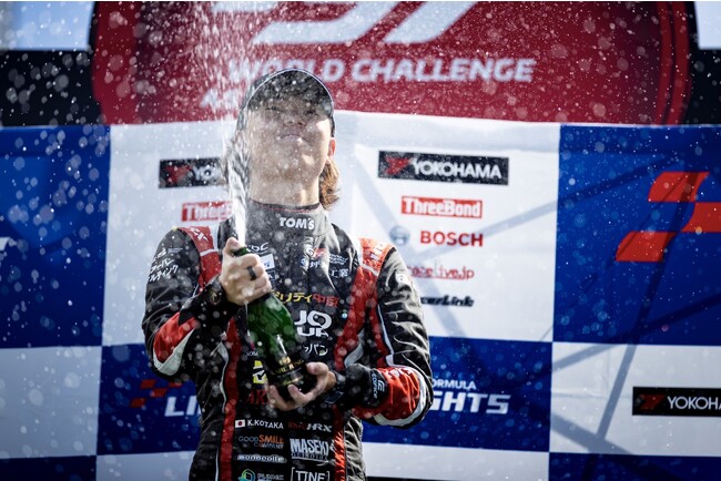 アジア圏での最高峰に位置するフォーミュラカーによるレースのシリーズである全日本スーパーフォーミュラ選手権。その下位カテゴリであり、全日本スーパーフォーミュラ・ライツ選手権(運営:一般社団法人SFLアソシエーション)に参戦中のレーシングドライバー小高一斗(TEAM TOM'S / Kuo モビリティ中京 TOM'S 320)が第17戦で優勝を飾り、18戦中8勝でシリーズチャンピオンを獲得しました。