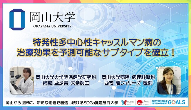 国立大学法人岡山大学(本部:岡山市北区、学長:槇野博史)の大学院保健学研究科の錦織亜沙美大学院生、岡山大学病院病理診断科の西村 碧フィリーズ医師、学術研究院保健学域の佐藤康晴教授らの研究グループは、特発性多中心性キャッスルマン病におけるサブタイプの確立について検証しました。