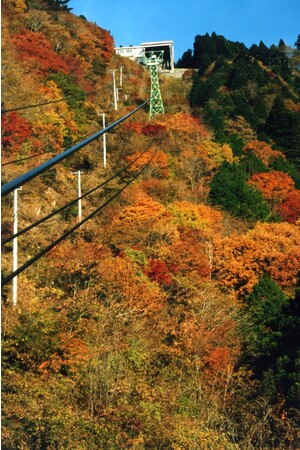 中部横断自動車道「身延山IC」より車で15分の『身延山ロープウェイ』は、日蓮宗総本山・身延山久遠寺のある山麓と身延山山頂を約7分で結ぶ三線交走式のロープウェイで、その高低差は763mと関東一を誇ります。山頂の展望台からは、東に富士山、南に駿河湾・伊豆半島、西に七面山、北に早川渓谷・南アルプス・八ヶ岳連峰・甲府盆地など、雄大な自然が織りなす360度の大パノラマを満喫する事が出来ます。10月下旬から11月中旬にかけての紅葉シーズンには、この大パノラマが一面赤色や黄色に染まり、まさに絶景が広がります。