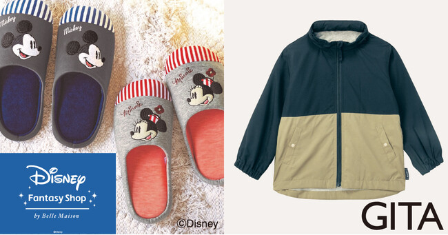 GITAからは、累計売上枚数7.3万枚(※1)を誇る人気の「満点ウィンドブレーカー」などの人気商品を、ディズニーファンタジーショップからはやわらかな肌触りの毛布など冬の新商品を取り揃えております。(※1)2022年6月時点