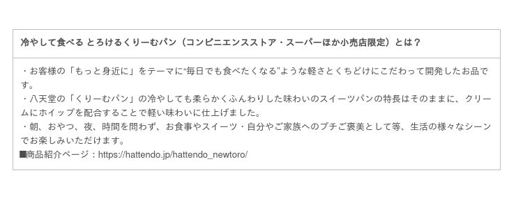 「冷やして食べる とろけるくりーむパン」はコンビニエンスストア・スーパーほか小売店限定販売の商品として開発をしたお品です。
