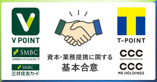 株式会社三井住友フィナンシャルグループ(執行役社長グループCEO:太田 純、以下「SMFG」、同社グループを総称して「SMBCグループ」)、及び三井住友カード株式会社(代表取締役社長:大西 幸彦、以下「三井住友カード」)とカルチュア・コンビニエンス・クラブ株式会社(代表取締役社長兼CEO:増田 宗昭、以下「CCC」、同社グループを総称して「CCCグループ」)及びCCCMKホールディングス株式会社(代表取締役社長:高橋 誉則、以下「CCCMKHD」)は、SMBCグループとCCCグループとの間の資本・業務提携に関し、基本合意書を締結いたしました。