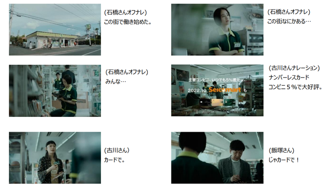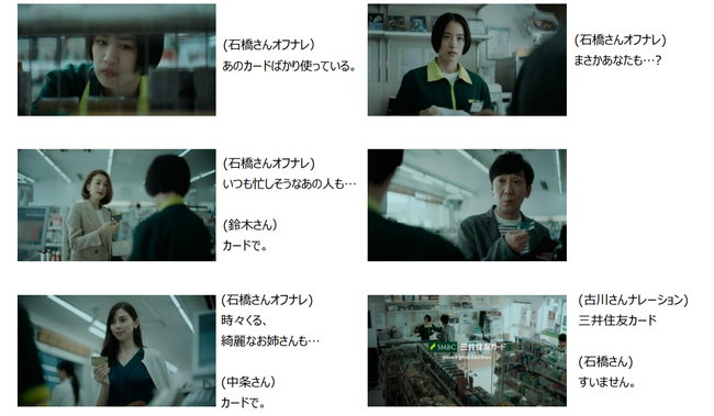 本TVCMでは、コンビニで働く石橋さんが、この街はみんなあのカードを使ってる?と疑問を持ち始め、石橋さん目線で物語が描かれているところがポイントです。