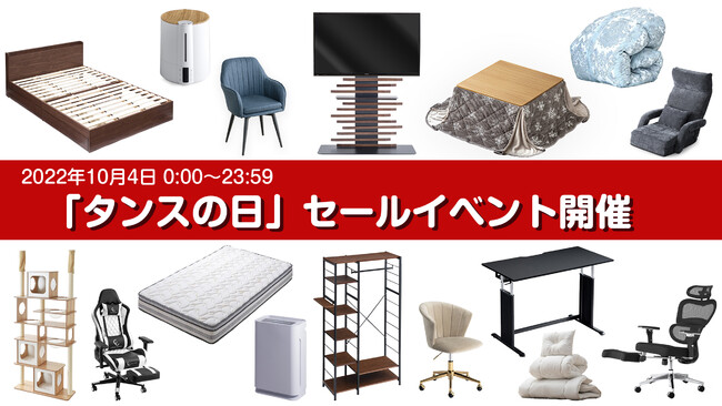 家具・インテリア×EC事業を展開するタンスのゲン株式会社(以下タンスのゲン、本社:福岡県大川市、代表取締役:橋爪福寿)は、2022年10月4日(火)の「タンスの日」にちなんで、運営しているタンスのゲン本店(https://www.tansu-gen.jp/)にて、日頃の感謝を込めて全商品10%OFFのセールを始め、各種お得なイベントを開催いたします。