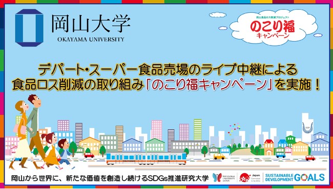 食品スーパー等で発生する食品ロスの削減の取り組みとして、 国立大学法人岡山大学(本部:岡山市北区、学長:槇野博史)の低炭素・廃棄物循環研究センターと岡山大学公認クラブ(校友会)のDS(データサイエンス)部・環境部ECOLO、岡山大学SDGsアンバサダーの4者協働の企画・運営により、デパート・スーパー等の食品売場のライブ中継による食品ロス削減の取り組み「のこり福キャンペーン」を実施します。キャンペーン期間は、食品ロス削減月間の2022年10月8日~31日です。