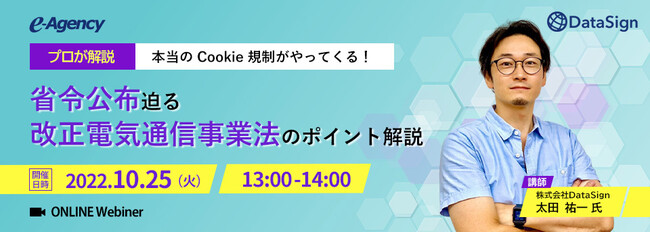 本ウェビナーでは、日本における個人情報保護分野の第一人者であるDataSign社の太田 祐一氏を講師としてお招きし、11月に省令発出予定の電気通信事業法の改正について、いち早く内容の解説を実施します。今後のデジタルマーケティングに大きな影響を与える「Cookie規制」について、できるだけわかりやすく、具体的に皆様にお伝えすることを想定しています。企業のデータプライバシー対策やマーケティング担当者が今押さえておくべきポイント、今後を見据えたCMPツールの必要性などを、事例を交えながらご紹介いたします。