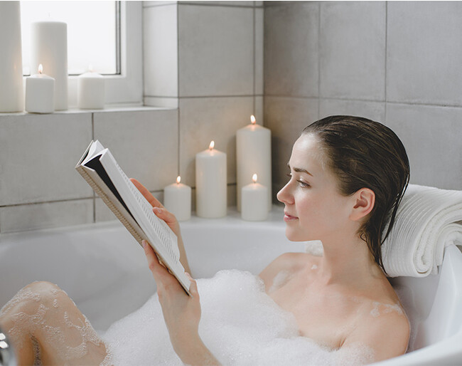 お風呂の入り方のひとつとして挙げられる「半身浴」。 肩までつかる「全身浴」と異なり、バスタブの中に座った状態で、みぞおち程度まで体をお湯につけて入浴する方法です。胸から上の部分は出した状態で、38℃くらいのお湯でじわっと汗をかくのが正しい半身浴のスタイルです。