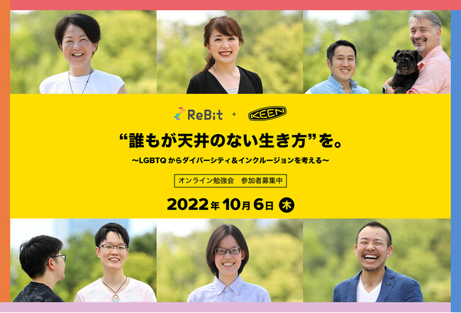 2003年の創業以来、社会貢献を経営の礎とするアウトドア・フットウェアブランド『KEEN(キーン)』(キーン・ジャパン合同会社 東京都港区 代表:竹田尚志)は、「“誰もが天井のない生き方” を。~LGBTQからダイバーシティ&インクルージョンを考える~」と題してオンラインの勉強会を2022年10月6日(木)19:30~21:00 開催いたします。本勉強会は、「LGBTQを含めた全ての子どもがありのままで大人になれる社会」を目指し、活動する認定NPO法人ReBitとの共催となります。
