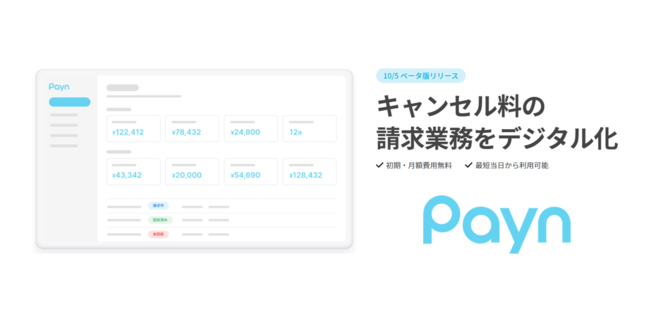 キャンセル料の請求業務をデジタル化する『Payn(ペイン)』 のシードラウンドにおいて出資