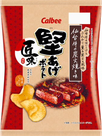 国産ジャガイモと国産素材を組み合わせた「匠味」シリーズより新商品が登場!最高級のブランド牛「仙台牛」を使用!炭火の風味がふんわり薫る 『堅あげポテト匠味(たくみ) 仙台牛の炭火焼き味』