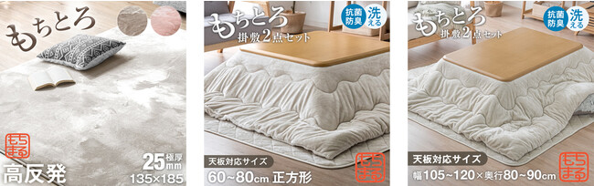 今回、以下の “もちとろ生地”を採用した寝具、こたつ布団、ラグなど6製品を展開いたします。