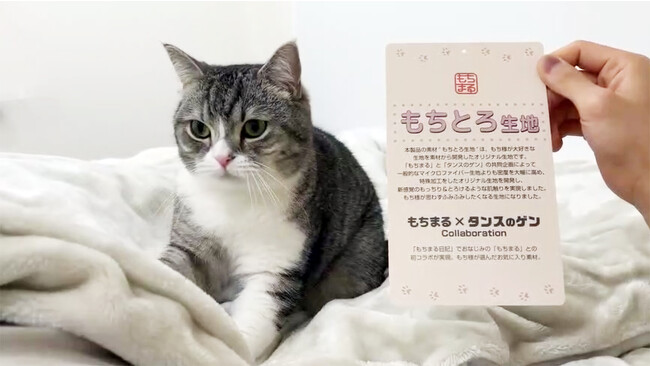 スコティッシュフォールドの愛称「もち様」こと、「もちまる」と飼い主『下僕』氏との何気ない日常を配信しているYouTubeチャンネル「もちまる日記」は、登録者数190万人を超える国内最大級の猫YouTubeチャンネルです。猫なのにお手をしたり、人間みたいなリアクションをしたりと毎日様々な表情を見せる「もち様」に多くの方が癒されています。今回、こだわりの強い「もち様」が気に入ってくれるような、より良い肌触りの生地を求め飼い主である『下僕』氏と「タンスのゲン」が素材から共同開発し、“もちとろ生地”を開発いたしました。